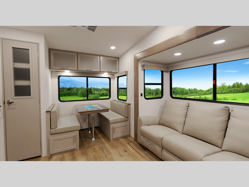 The AZDEL composite sidewalls are ultra durable and the Benchmark chassis features a super saver upper deck. There are industry leading tank sizes, smart storage solutions, flush floor slide out floors throughout, and no carpet to make cleaning easier than ever.