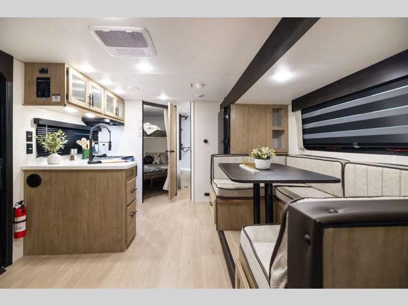 Sleeps 9 Slides 1 Length 23 ft 9 in Ext Width 8 ft Ext Height 10 ft 6 in Int Height 0 ft Hitch Weight 760 lbs GVWR 7760 lbs Dry Weight 6573 lbs Cargo Capacity 1187 lbs Fresh Water Capacity 52 gals Grey Water Capacity 38 gals Black Water Capacity 38 gals Furnace BTU 20000 btu Number Of Bunks 2 Available Beds RV King Refrigerator Type 12V Cooktop Burners 3 Number of Awnings 1 Water Heater Type Tankless AC BTU 15000 btu Cargo Deck Size 0 ft Awning Info 15' Full Length Power w/LED Light Strip Axle Count 2 Shower Type Tub/Shower Combo Solar Wattage 200 watts Similar Floorplans