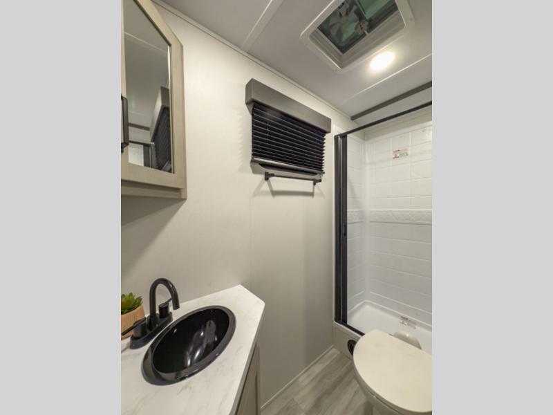 MAV stands for Momentum Adventure Vehicle, and you will surely have grand adventures in this one. The Strong Wall aluminum construction is 25% thicker than the competition and the double insulated roof is ultra durable. Thoughtful design touches make life easier, like the magnetic storage door catches and the lack of wheel wells in the garage, which gives you full use of the cargo area. Inside you'll find solid hardwood drawer fronts, residential countertops, and a solid bedroom door. The Solar Package provides off-grid capabilities with a 180W solar panel, 12V refrigerator, battery monitor, and 40 Amp charge controller with Bluetooth!