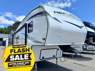 Each Reflection 100 Series fifth wheel by Grand Design is affordable and packed with luxury for unforgettable camping memories! The MorRyde CRE3000 suspension system and Goodyear Endurance tires will provide smooth towing from home to campground. And the solar package with a 180W solar panel, 60 Amp charge controller and 12V refrigerator will allow you to camp for longer periods of time and in more locations! A heated and enclosed underbelly with circulating heat is included in the Arctic 4-Seasons Protection Package, along with a double insulated roof and front cap, and thermofoil insulation under the holding tanks so you can camp all year long if you choose. You will appreciate having an on-demand water heater for hot showers after exploring, and the universal all-in-one docking station will let you monitor your RVs tanks levels and functions with ease. These models also include many luxurious interior features, such as premium Congoleum flooring, pleated shades, residential cabinetry, and matte black fixtures and hardware. Don't let the Reflection 100 Series fifth wheels pass you by!