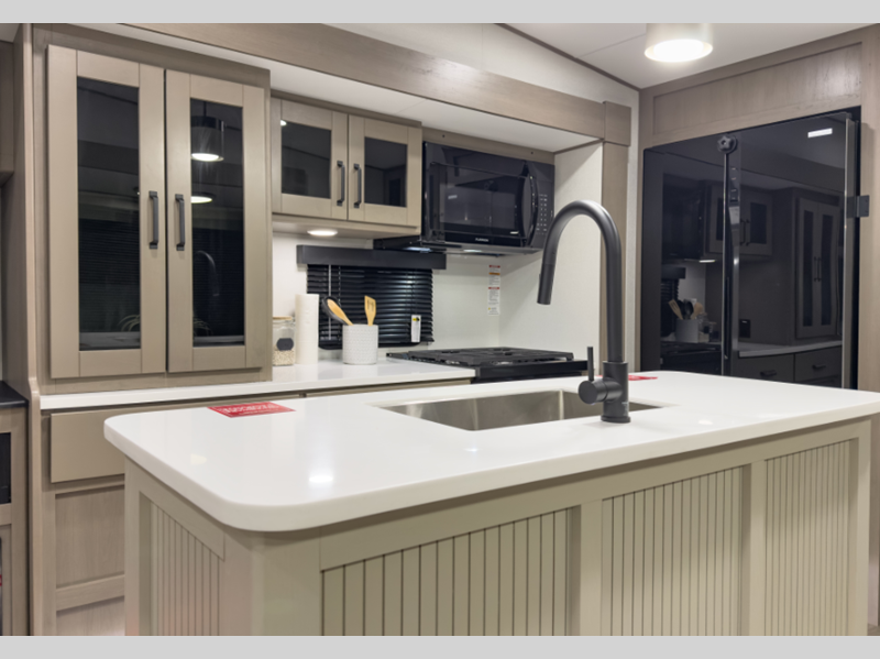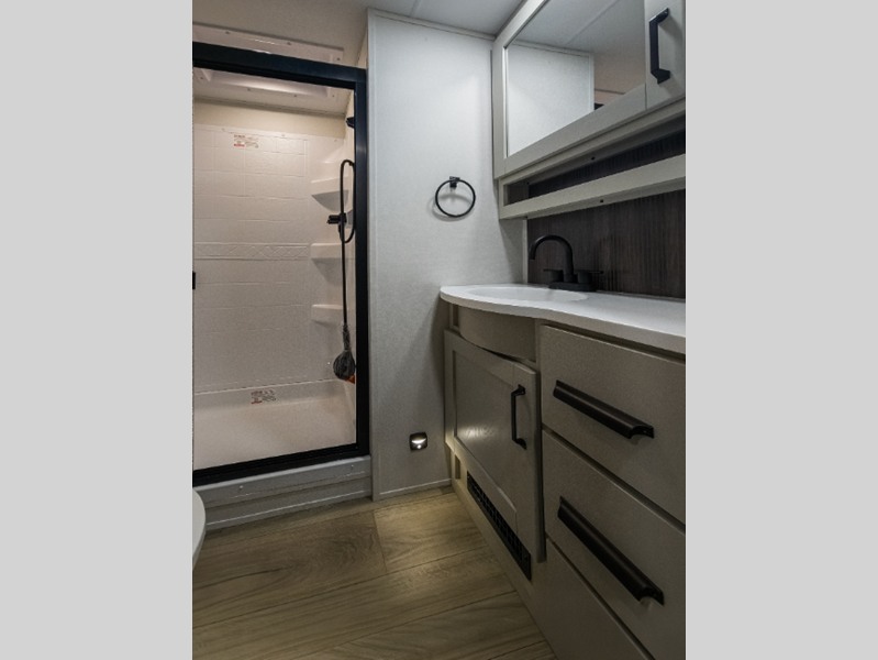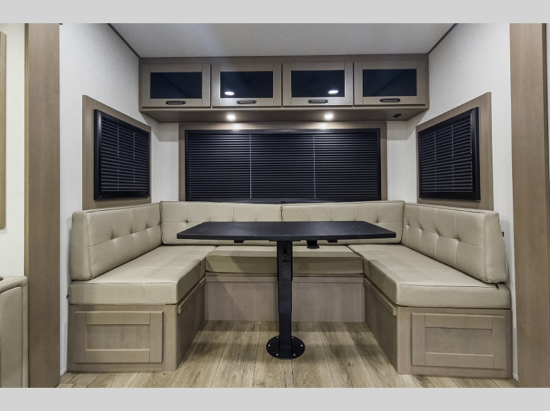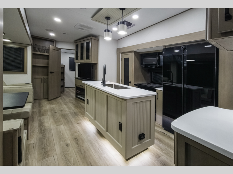 Reflection is built with the Arctic 4-Season Protection package which provides a 35K BTU high-capacity furnace, double insulated roof and front cap, a heated and underbelly with circulating heat, and 12V heat pads on the holding tanks to mention a few features that allow you to travel during any climate. The interior offers residential cabinetry, a deep-seated stainless-steel kitchen sink in the gourmet kitchen, a spacious shower with a glass door, and ductless flooring in the living area to name a few comforts.