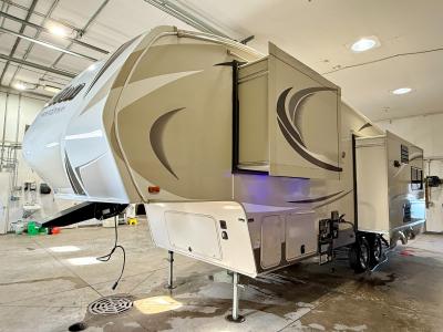 Reflection is built with the Artic 4-Season Protection package which provides a 35K BTU high capacity furnace, double insulated roof and front cap, a heated and underbelly with circulating heat, and 12V heat pads on the holding tanks to mention a few features that allow you to travel during any climate. The interior offers residential cabinetry, a deep seated stainless steel kitchen sink in the gourmet kitchen, a spacious shower with a glass door, and ductless flooring in the living area to name a few comforts.