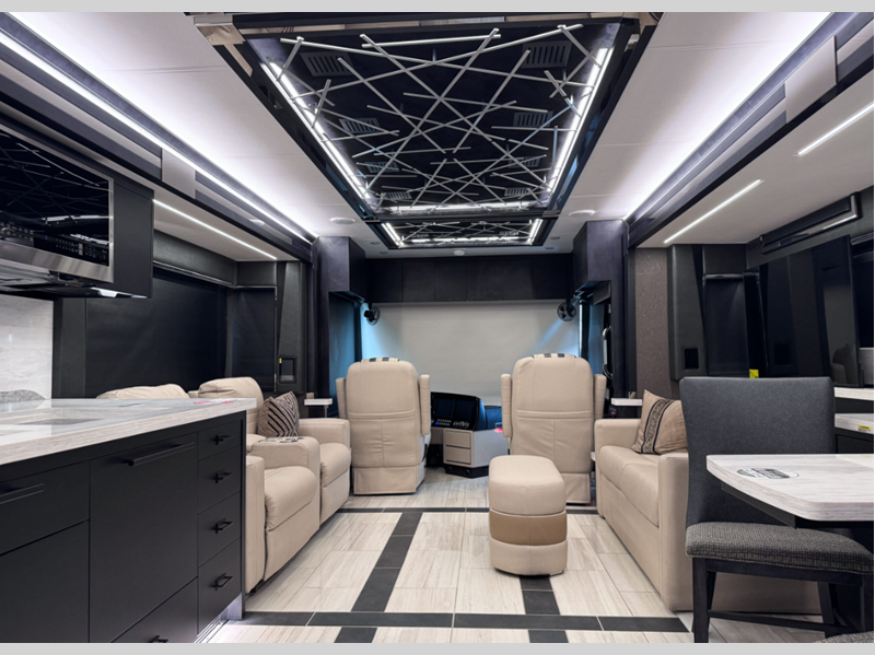 Touring the country or your home state will be easier than ever with the advanced monitor system with JBL sounds, the navigation system, and the 360 degree view camera system. You are sure to stay comfortable on the lifestyle leather power adjustable captain's seats, plus there is a tilt and telescoping wheel with integrated controls that can keep you in control of dash functions. You will love the new features that include Generation 13 paint schemes, plus a now standard exterior ladder, beverage center, and Starlink Pro with a subscription!