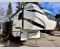 You won't want to camp any other way once you see what this fifth wheel has to offer! The front private bedroom has a queen bed with a slide that has drawers and a wardrobe, as well as an entrance into the dual entry bathroom which has a radius shower to freshen up in each morning. The chef can prepare their best meals with the kitchen island and three burner cooktop, store the dishes in the hutch, and your favorite snacks in the pantry. Pop a bag of popcorn in the microwave to enjoy while you watch your favorite movie on the LED TV and you can choose to add the optional 30" fireplace to the entertainment center. The rear 70" tri-fold sofa has end tables to set your drinks on and the theater seating has USB ports to charge your phones too!